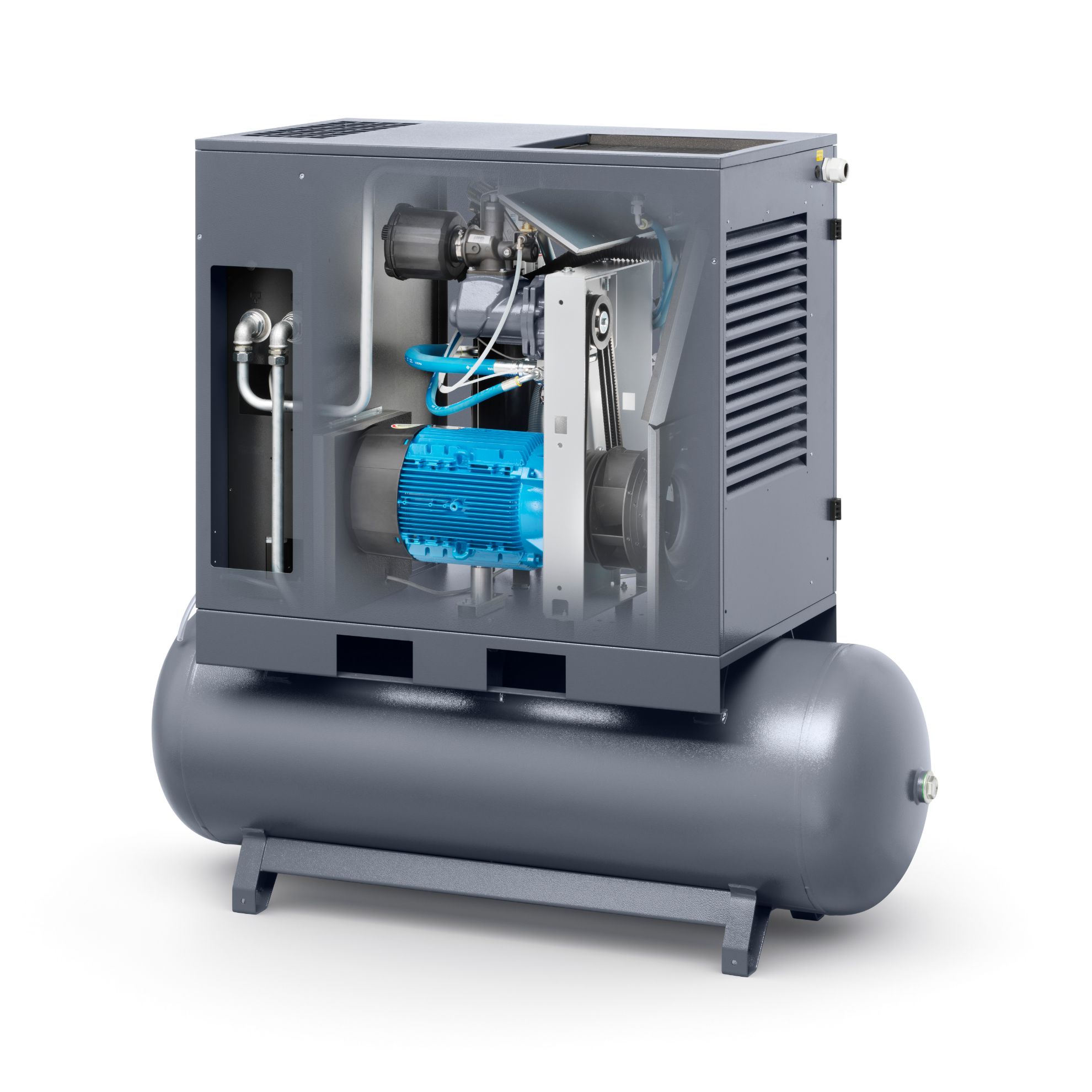 - Belt-driven rotary screw design provides efficient, dependable compressed air with a quieter operating profile.