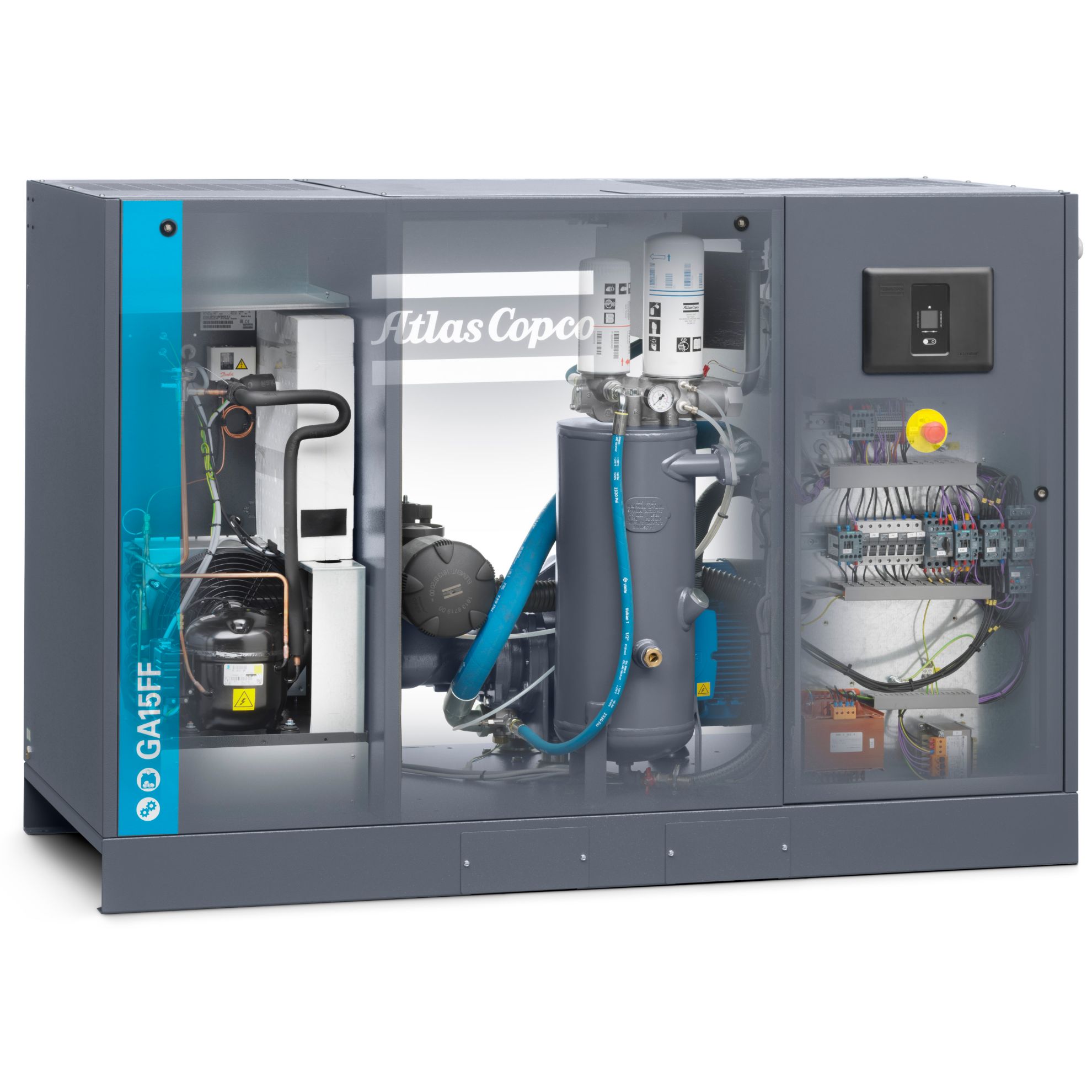 This configuration is the Full Feature model and has a pre-installed integrated dryer. The GA22FF is a dependable, space-saving compressed air solution.