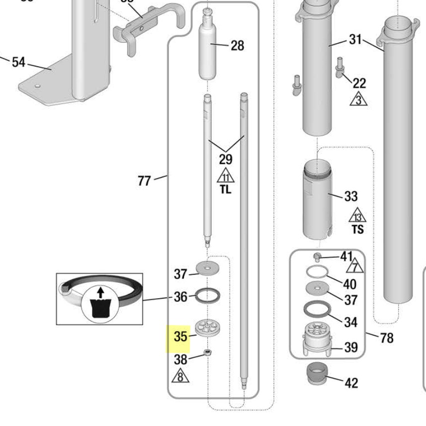 This is the upper piston on the Graco PowerFill 3.5 Standard, Pro, XL Pro and others. Please check your manual to verify parts fitment or contact us to confirm parts that work for your specific application.