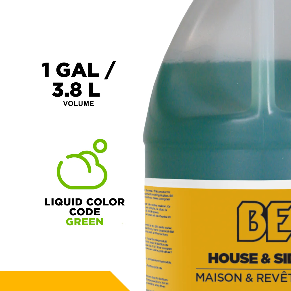 Give your home the deep clean it deserves with BE’s Pressure Washer House and Siding Detergent — a professional-grade cleaning solution and versatile cleaner for outdoor surfaces, designed to safely remove grime, mildew, dirt, and buildup from your home’s exterior surfaces. This 1-gallon concentrated detergent is specially formulated for use with pressure washer soap injection systems and delivers high-yield results with minimal effort.