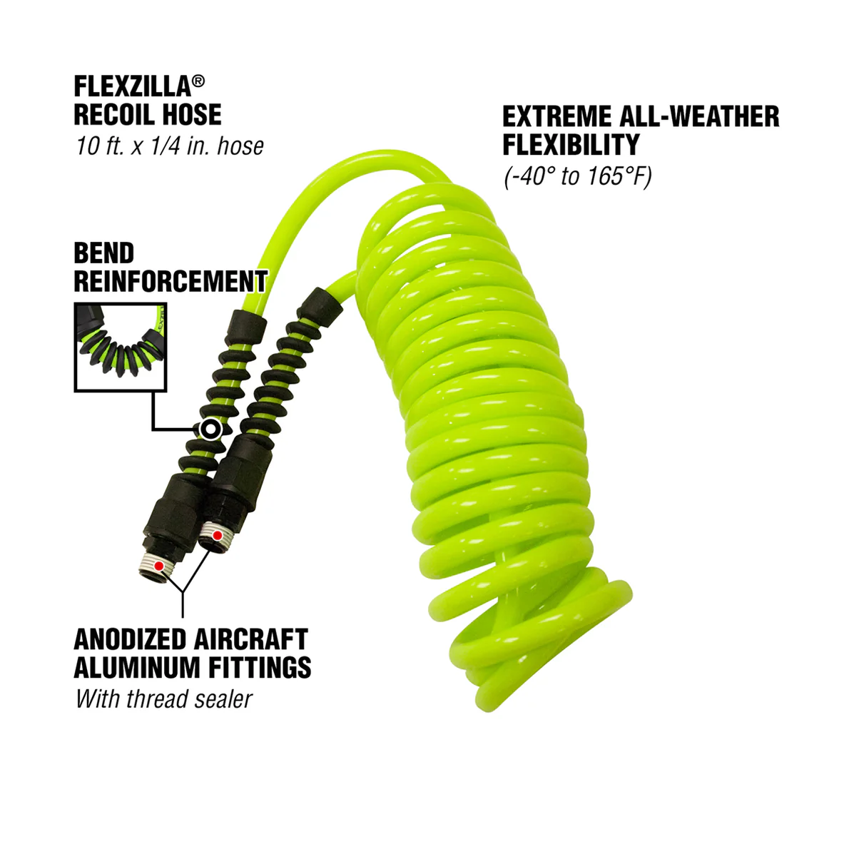 Legacy Flexzilla LP1425AFZ Recoil Air Hose, 1/4" X 25', 1/4" npt